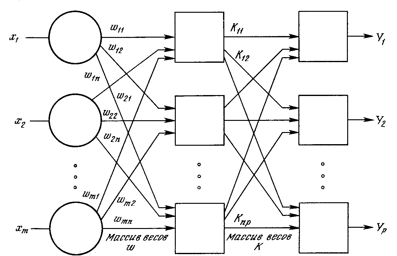 Рис. 5.1. Двухслойная сеть без обратных связей