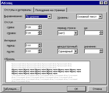 ікно містить дві вкладки "Отступы и интервалы" і "Положение на странице".Word дозволяє вирівнювати абзац: