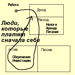 платят себе в последнюю очередь. Они платят кому-то еще в первую очередь. Были дни в моей жизни, когда, по какой-то причине, мой денежный поток был намного меньше, нежели мои счета. И, все равно, я платил сначала себе. Мои бухгалтер и бухгалтер-эксперт вопили в панике: "скоро до нас доберутся. Налоговое управление засунет вас в тюрьму. Вы разрушите кредит доверия к себе. Нам вырубят электричество". А я, все равно платил сначала себе.