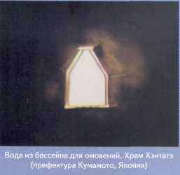 ристалл, полученный под воздействием «кругов на полях», напоминает «летающую тарелку». Вода из древнейшего святилища Японии создала кристалл, похожий на японский иероглиф «признательность».