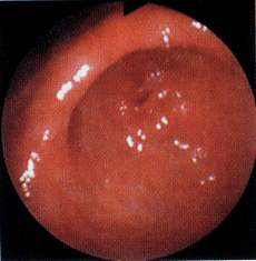 | Мал. 7. Ендоскопічна картина при хронічному неатрофічному (антральному) гастриті (типу В). Гіперемія слизової оболонки антрального відділу шлунку |