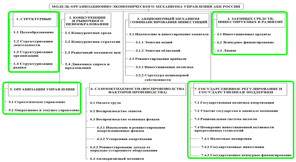 - разработан экономический механизм управления предприятиями, отраслями и АБК в целом на основе перенесения акцента с административных и фискальных методов регулирования на партнерские, инновационно-ориентированные отношения между бизнесом и государством;