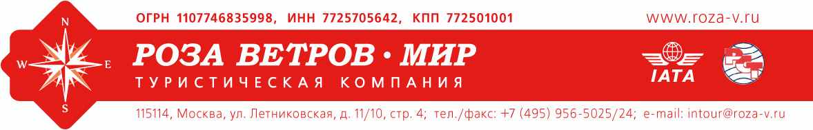 Приведенные цены в рублях рассчитаны по курсу 1 USD=32 РУБ. Цену в рублях на текущую дату следует уточнять у турагентов, а также при личном обращении в ООО "Роза ветров".