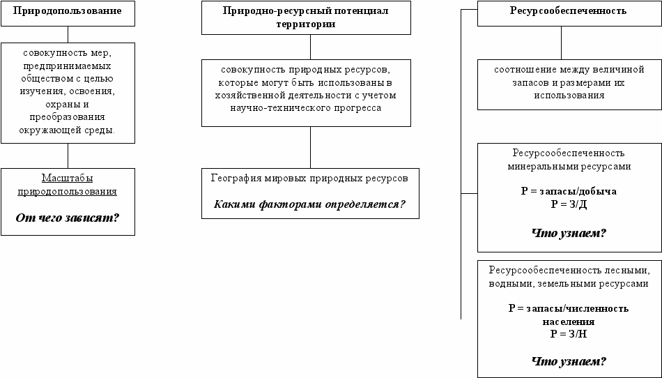 - Закрепить понятие «ресурсообеспеченность».