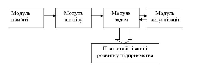 Розв’язання поставленого завдання на підприємстві «Славгородський арматурний завод» передбачає використання відповідної економіко-математичної моделі. Представлена структурна схема моделі аналізу виробничої діяльності, результат функціонування якої забезпечує стабільність підприємства, зображена на рисунку 1.