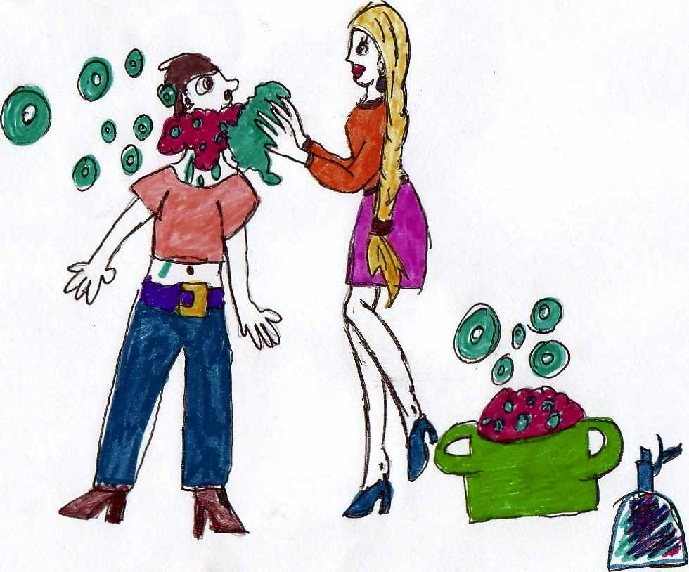 Ученики рисовали фразеологизмы. Мы их отсканировали, а ученики восьмого класса приготовили конкурс-презентацию по данной теме, используя рисунки шестиклассников и рисунки, найденные в сети. Этот конкурс назывался «Угадай, что означает данный фразеологизм?».