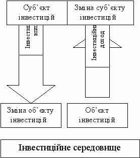 Інвестиційний процес має всі ознаки системи: у ньому завжди присутні суб'єкт (інвестор), об'єкт (об'єкт інвестицій), зв'язок між ними (інвестування з метою одержання інвестиційного доходу) і середовище, у якому вони існують (інвестиційне середовище). При цьому зв'язок виступає системо утворюючим фактором, оскільки поєднує всі інші елементи в єдине ціле (рис 1.1).