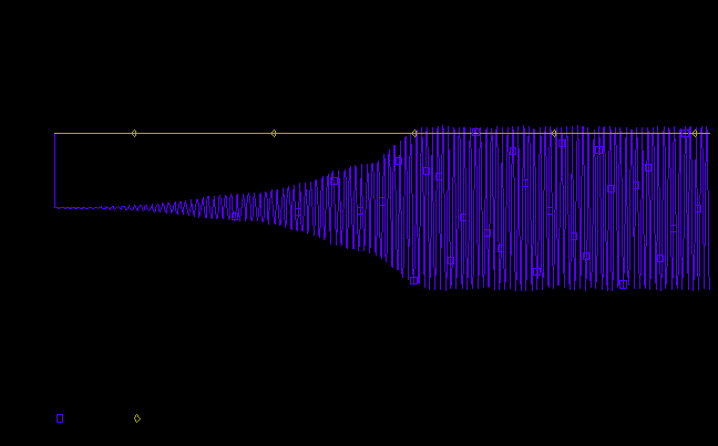 Для проверки работоспособности генератора был использован компьютерный пакет OrCad. При помощи его были получены график напряжения на коллекторе (рис. 5.), а также построена электрическая схема со всеми расчётными параметрами (рис. 6.). При моделировании были приняты некоторые допущения, например, отечественный транзистор КТ315 был заменён моделью Q2N3906, как наиболее схожим с ним.