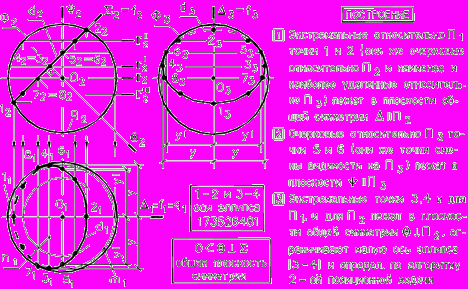 Построение точек на поверхностях сферы или тора выполняют при помощи параллели или меридиана, проходящих через эту точку.