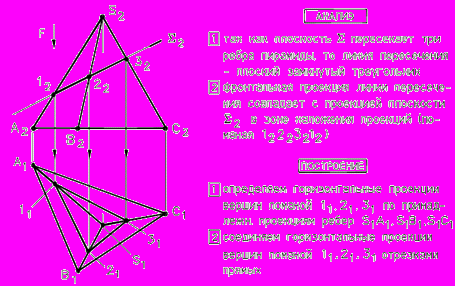 ис. 57 - Построение линии пересечения пирамиды с фронтально-проецирующей плоскостью