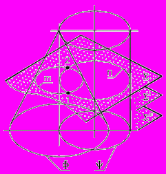 - Плоскости ГП1 и ГП1 пересекают поверхности по окружностям и дают соответственно экстремальные и промежуточные точки.