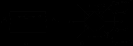 Напряженное состояние при растяжении стержня является одноосным (рис. 9, а). Поскольку на поперечных и продольных площадках касательные напряжения не возникают, то эти площадки являются главными. Причем в случае растяжения