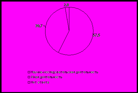 Более половины выпускников (439 человек или 57%) отдали предпочтение научно-исследовательской деятельности. В пересчете на полную выборочную совокупность число выпускников, желающих работать в научной сфере, составило 42%, т.е. примерно четыре из десяти выпускников. Такой показатель свидетельствует о несостоятельности общественного пессимизма в отношении научных устремлений современной молодежи.