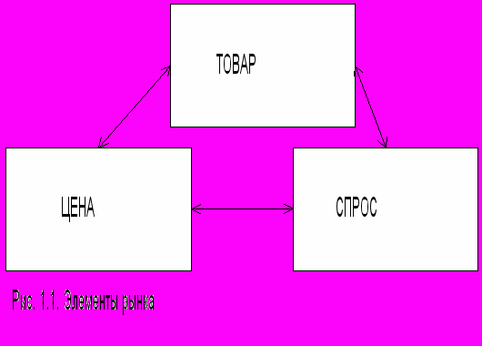 Рынок – не только совокупность существующих и потенциальных потребителей, но и комплекс взаимосвязанных элементов – товарное предложение, цена и спрос рис 1.
