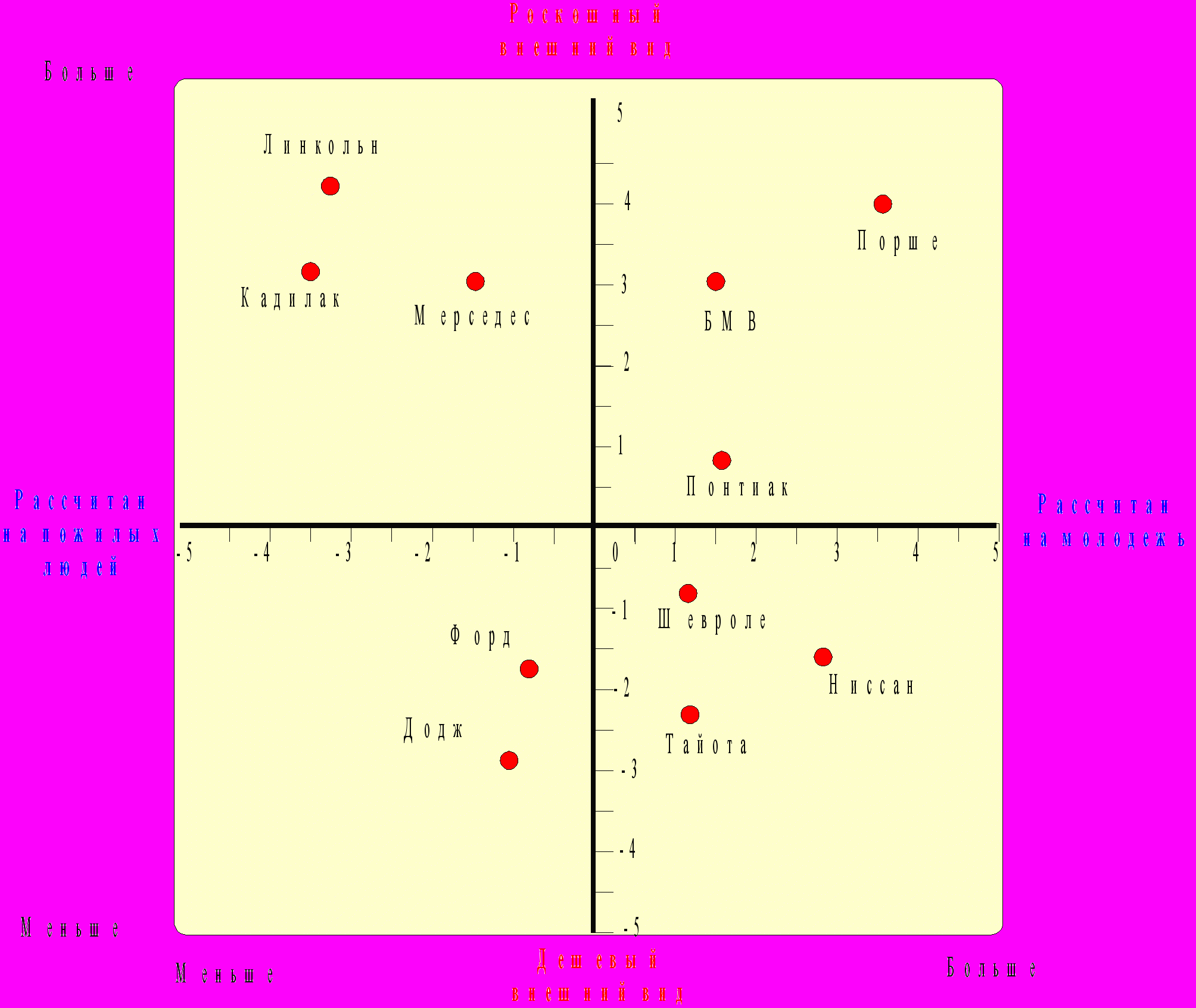 Рис.39. Карта позиционирования для рынка легковых автомобилей