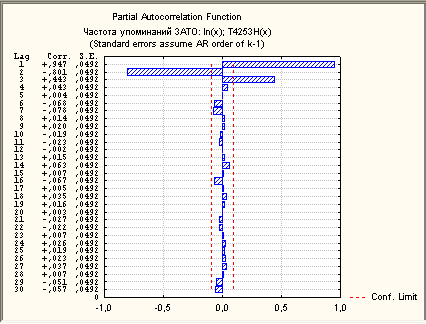 Гистограмма 3. Частная автокорреляционная функция преобразованного ряда
