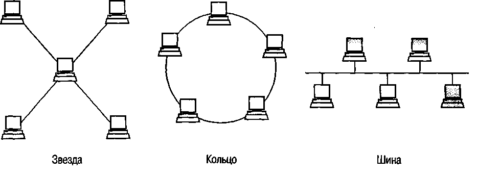 На рис. 51 представлена типичная конфигурация сети на промышленном предприятии, использующая такие сетевые топологии, как звезда, кольцо и шина (см. рис. 52).