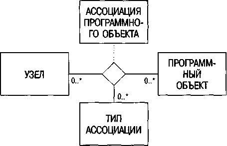 На стадии спецификации проекта ПРОГРАММНЫЕ ОБЪЕКТЫ (модули, бизнес-объекты, пользовательские транзакции) привязываются к конкретным УЗЛАМ компьютерной сети. Они могут влиять на физические системы хранения или физический доступ, используя стандартные методы (удаленные вызовы процедур, CORBA, DCOM и т.д.) или оригинальные методы доступа, такие как, например, удаленный вызов функций (RFC) или ALE в приложениях SAP. На рис. 95 некоторые из этих вариантов представлены классом ТИП АССОЦИАЦИИ.