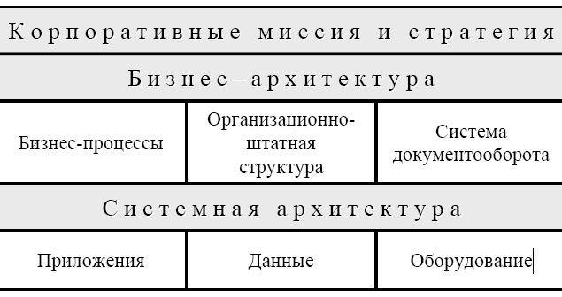В самом общем виде под архитектурой предприятия (ЕА - Enterprise Architecture) понимается всестороннее и исчерпывающее описание (модель) всех его ключевых элементов и межэлементных отношений. Согласно ISO 15704 (“Industrial Automation Systems – Requirements for Enterprise-Reference Architectures and Methodologies. 1999”) архитектура предприятия должна включать роль людей, описание процессов (функции и поведение), и представление всех вспомогательных технологий на протяжении всего жизненного цикла предприятия. Архитектура (в соответствии с документом “Federal Enterprise Architecture Framework. Dev. by: The Chief Information Officers Council (USA)”) является стратегической информационной основой, определяющей: