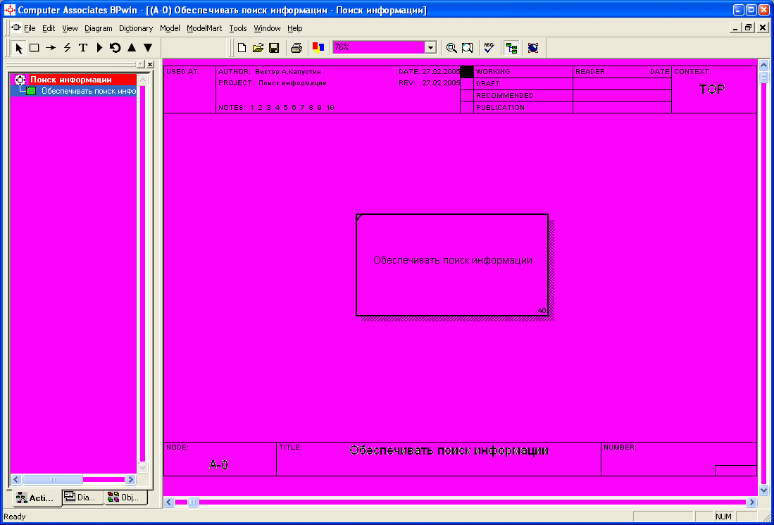 | П ![]() осле того, как все внешние дуги модели построены, наступает черед декомпозиции – построения диаграммы A0. | |