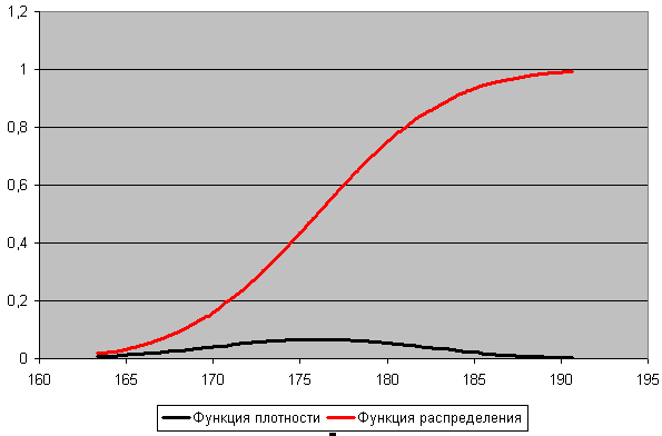 Рис. 3 Функция плотности и функция распределения для нормального закона распределения вероятностей