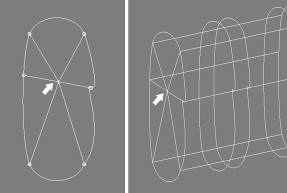 Ячейки сплайновой сетки должны образовываться сплайнами, пересекающимися в точках своих вершин. Чтобы обеспечить точное совпадение вершин пересекающихся сплайнов, используется средство трехмерной привязки;