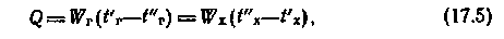 из уравнения (17.5) следует, что Wг= = Q/(t'г—t"г) и Wx=Q/(t''х— t'x), то подставляя эти значения в уравнения (17.7а) и (17.76) и решая их совместно с уравнением (17.1), получаем
