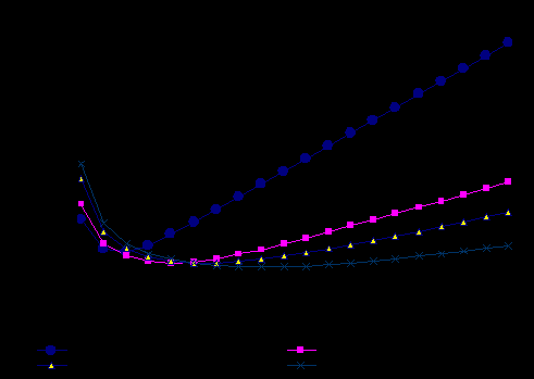 В зависимости от количества поступающих заявок, должна выбираться такая схема организации работы на ПТО, при которой значения обобщенного показателя наименьшие (рис. 8).