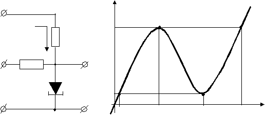 Вероятность туннельного перехода тем выше, чем уже p-n- переход и меньше его потенциальный барьер. В туннельных диодах благодаря высокой концентрации примесей толщина p-n-перехода составляет 0,01мкм, что в десятки раз меньше, чем у диодов других типов, поэтому туннельный эффект в них ярко выражен и приводит к своеобразному виду вольтамперной характеристики (рис. 6).