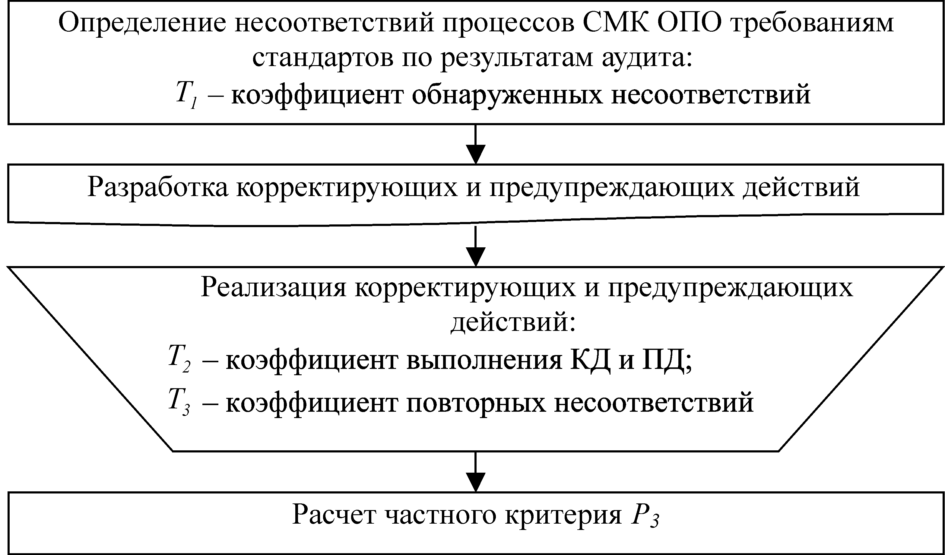 , (2)где Р1 – критерий, характеризующий удовлетворенность потребителей качеством продукции (услуг); Р2 – критерий, характеризующий соответствие продукции (услуг) требованиям; Р3 – критерий, характеризующий степень выполнения требований стандартов, на соответствие которым разработана СМК ОПО; Р4 – критерий, характеризующий качество продукции поставщиков;