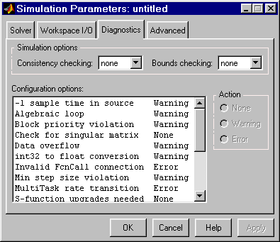 - Normal/Accelerator — Обычный/Ускоренный режим расчета. Инструмент доступен, если установлено приложение Simulink Performance Tool.