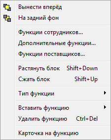 Аналогично, при удалении функции с помощью всплывающего меню (Ctrl+Del) удаляются также ответственные и ссылки на документы, а функции, идущие за удаляемой функцией, будут автоматически передвинуты вверх, в отличие от обычного метода удаления функции с помощью горячей клавиши Del.