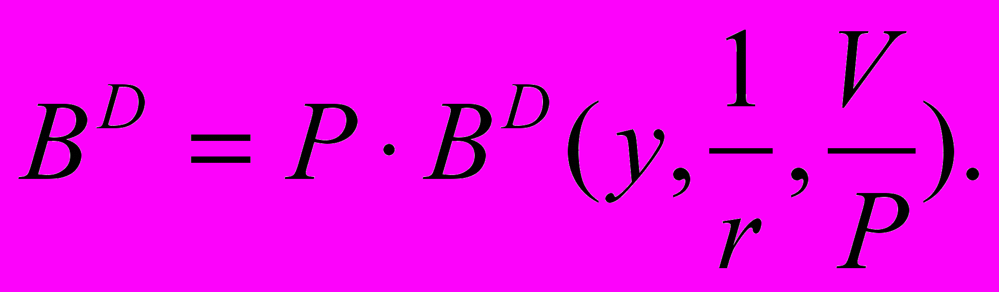 (А.2.1)Левая сторона уравнения представляет реальный спрос на ЦБ. Он равен количеству запрашиваемых ЦБ – BD, деленное на уровень цен Р: