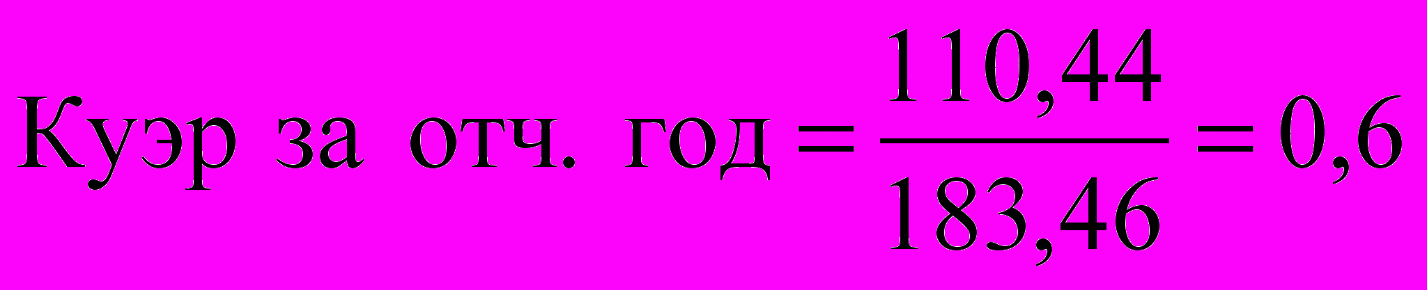 На нашем предприятии Куэр снизился очень незначительно в отчетном году и составил 0,6, это означает долю чистой прибыли по отношению к собственному капиталу предприятия.