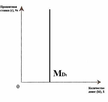 Первый и второй мотивы спроса образуют трансакционный спрос на деньги, иначе спрос на деньги для сделок MDt (Y). Такой спрос на деньги изменяется пропорционально номинальному ВВП и обратно пропорционально скорости обращения денег. С определенным упрощением можно сказать, что спрос на деньги для сделок не зависит от изменения ставки процента (рис. 13.1).