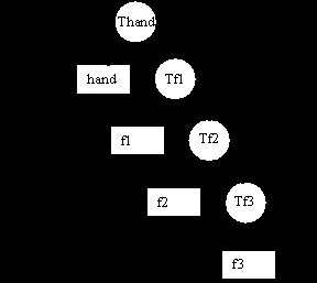 Теперь представим, что мы хотим нарисовать руку с тремя одинаковыми пальцами. Мы можем создать более комплексный граф, который использовался в рассмотренном примере. Так как все пальцы описаны в системе координат, связаннной с рукой, необходимо сохранять эту систему , перед тем как рисовать каждый палец. Это сделано с помощью вызовов функций PUSHMATRIX() и POPMATRIX().