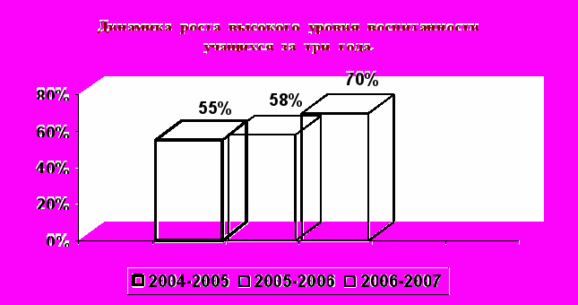 Так же доказательством эффективности работы модели школьного самоуправления «Совета старшеклассников «МЫ» могут служить показатели уровня воспитанности учащихся. Ежегодно в школе проходит мониторинг уровня воспитанности учащихся по методике «Личностный рост». (Приложение № 22). За последние три года показатели уровня воспитанности учащихся ОУ Новодевиченской СОШ значительно возросли.