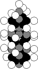 ![]() Рис. 8. Схема ядра атома никеля (светлые «шарики» - протоны, а серые и тёмные – нейтроны) | ![]() Рис. 9. Модель ядра атома меди |