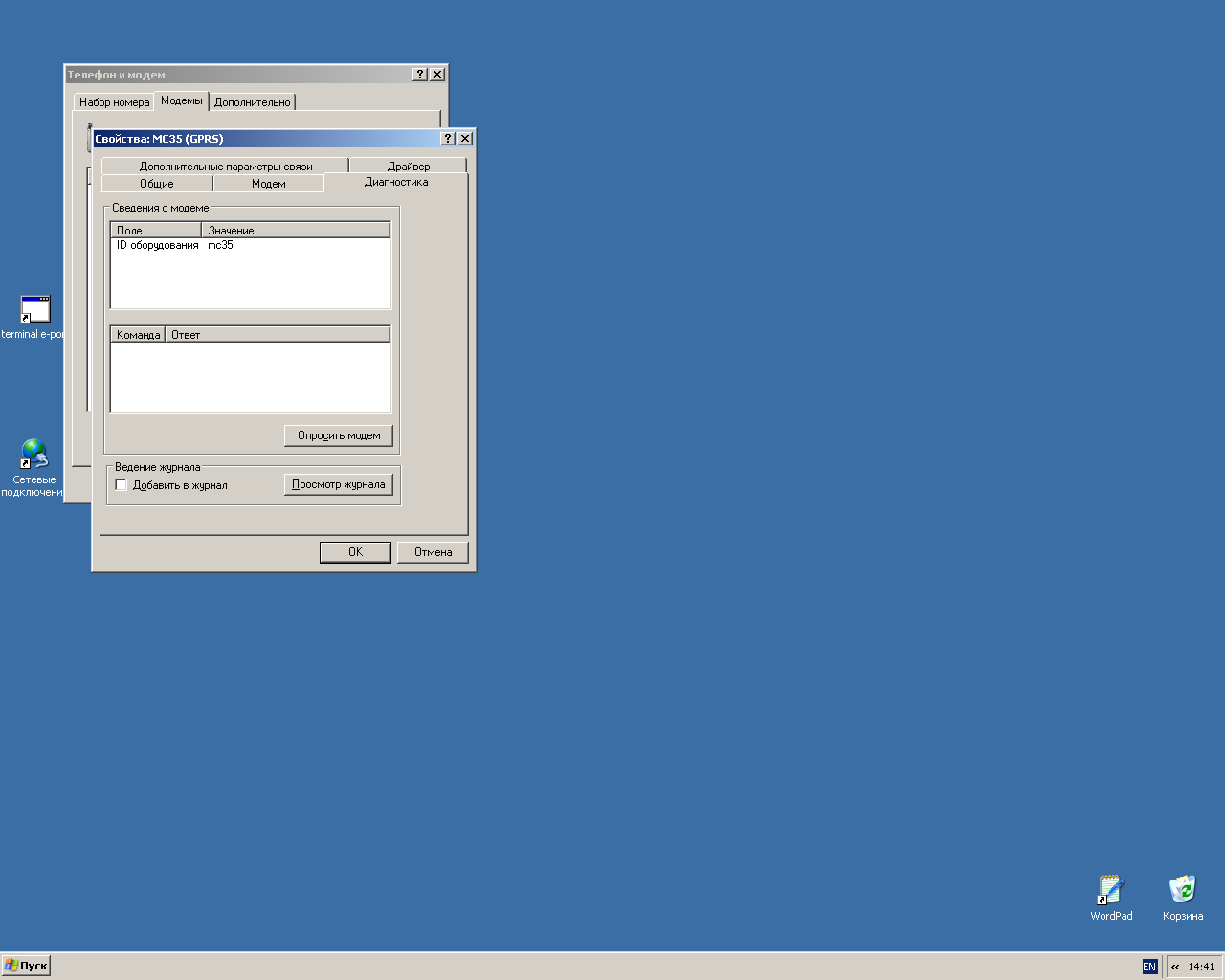 В окне «диагностика» нажимаем на кнопку «опросить модем»