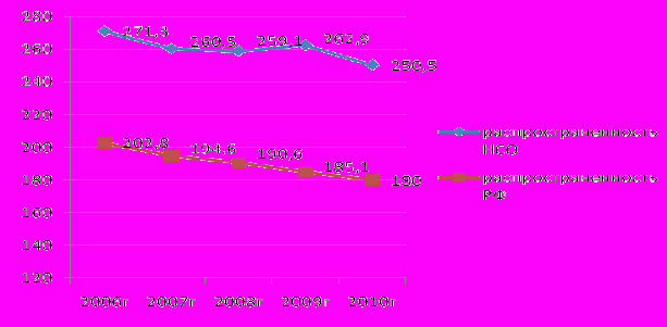 аспространенность туберкулеза (на 100 тыс. населения) в Новосибирской области (НСО) в сравнении с РФ в динамике за 5 лет