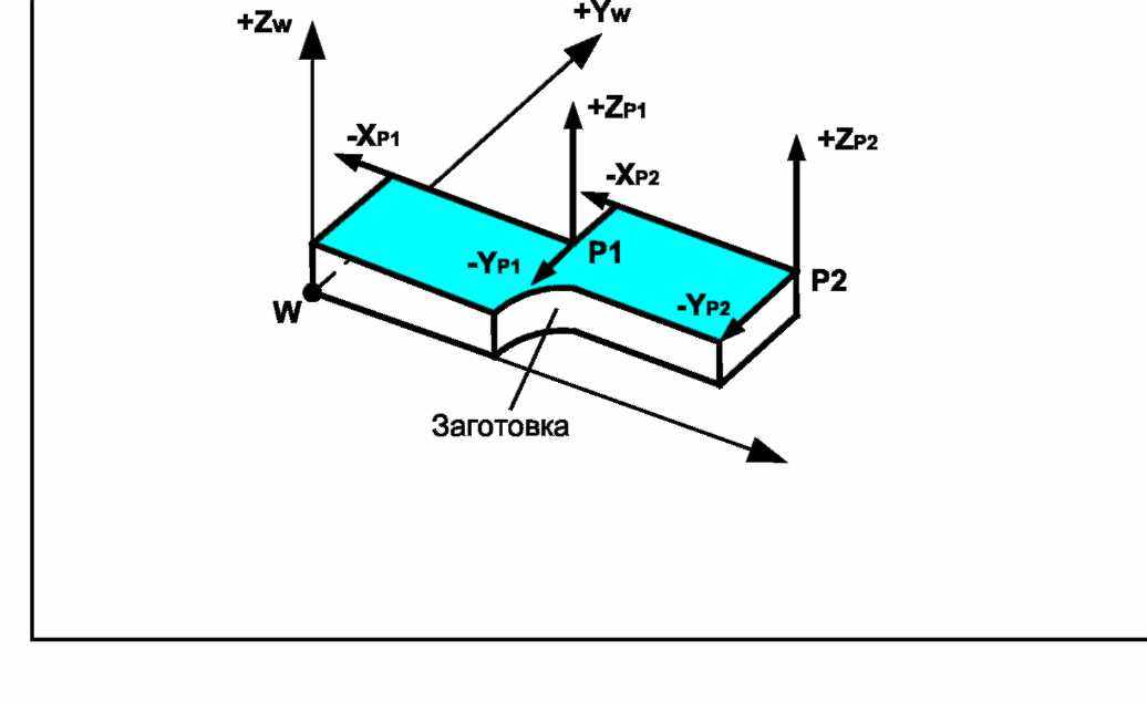 Р1 - начало координат для 1-ой смещенной координатной системы Р2 - начало координат для 2-ой смещенной координатной системы W - начало координат заготовки