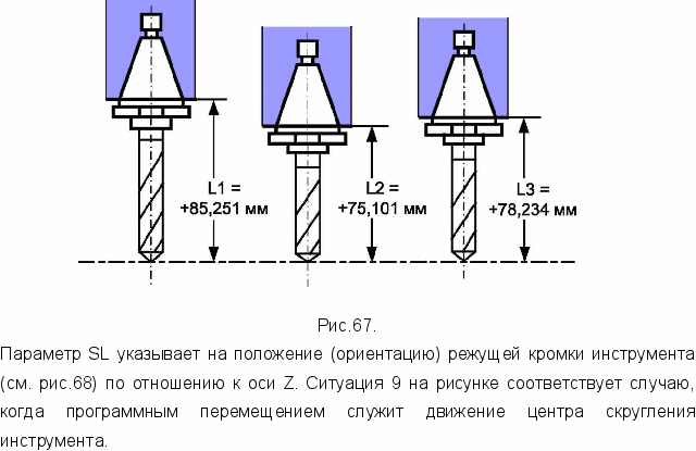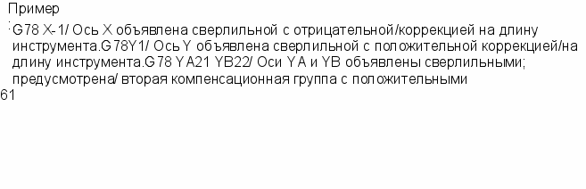 Здесь: имена осей i...n являются логическими адресами координатных осей; значения <коррекции i > указаны в таблице. Знак + или - в формате коррекции указывает на направление компенсации размера инструмента.