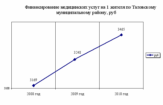 . В течение 3-х лет произошло сокращение коечного фонда на 55 коек: 15 коек в Чигольской участковой больнице и 40 коек в Таловской ЦРБ ( терапевтических 15 коек, неврологических 5 коек, хирургических 20коек). На 01.01.2011г. в МУЗ «Таловская ЦРБ» функционируют 225 коек и сокращение коечного фонда в дальнейшем не планируется, т.к. структура коечного фонда приведена в соответствие с государственными гарантиями.