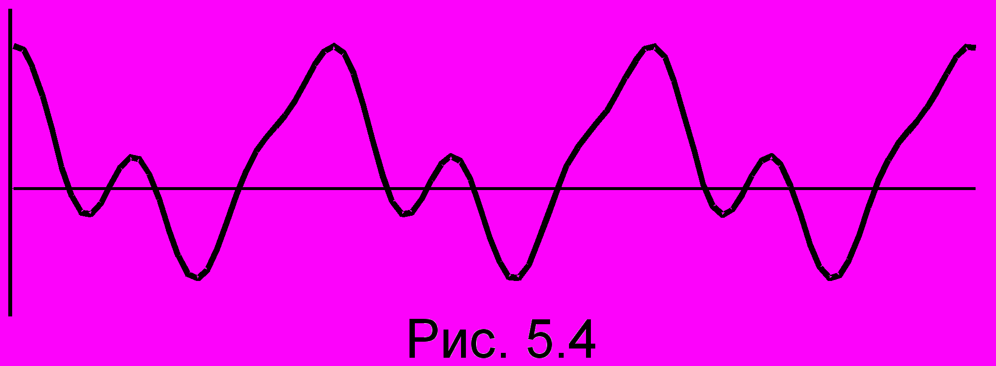 ригинального сигнала воспроизводящее устройство (радиоприемник, магнитофон, плеер и т.п.) должно быть способным обеспечивать одинаковое усиление в диапазоне частот, содержащем гармоники заметной амплитуды, т.е. иметь оптимальную полосу пропускания. Слишком широкая полоса пропускания открывает "ворота" не только для спектральных составляющих, но и для помех, а слишком узкая полоса даст заметное искажение сигнала. В телефонии, где не требуется высокого качества воспроизведения исходного голосового сигнала, используется узкая полоса. Поэтому не всегда по телефону можно узнать голос знакомого человека. На рис. 5.4 для сравнения показан тот же, что и на рис. 5.3, сложный сигнал, прошедший через воспроизводящее устройство, пропускающее только три первых гармоники (k = 1, 2, 3). Из рисунков легко видеть степень искажения исходного сигнала.