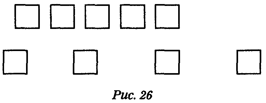 Предложите малышу рассмотреть рис. 26 и сказать, в каком ряду больше квадратиков. Как правило, дети отвечают, что во втором. Они не считают, а полагаются на зрительное восприятие. Необходимо приучить ребенка пересчитывать предметы.