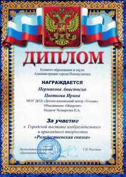 Воспитанники МОУ ДОД ДЮЦ «Уголёк» приняли участие в Городской выставке изобразительного и прикладного творчества «Рождественская сказка» и «Рождественская фантазия», номинация «Сказочное мастерство».