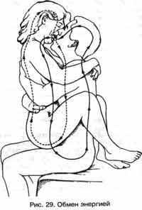 Вы не можете получить ее энергию инь, не давая ей свою энергию ян. Когда вы позволяете ей поглощать больше вашей избыточной энергии ян, вам может удаться избежать эякуляции и накопления слишком большого количества энергии в своих половых органах. Если вы эякулируете, то энергией обмениваться трудно, поскольку вы теряете при этом большую часть своей энергии. Помните, обмен очень важен для вас обоих (рис. 29).