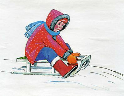 Die Kinder rodeln im Winter. Sie laufen auch Schi und Schlittschuh. Im Hof machen die Jungen und die Mädchen einen Schneemann gern. Oft machen die Kinder eine Schneeballschlacht.