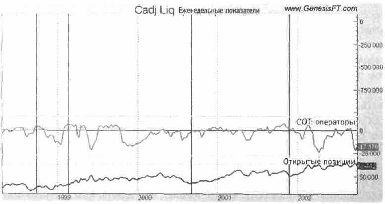 Рис. 15.5. График, показывающий 0I и чистую позицию СОТ Источник: Genesis Financial Technologies, Inc. (ссылка скрыта).