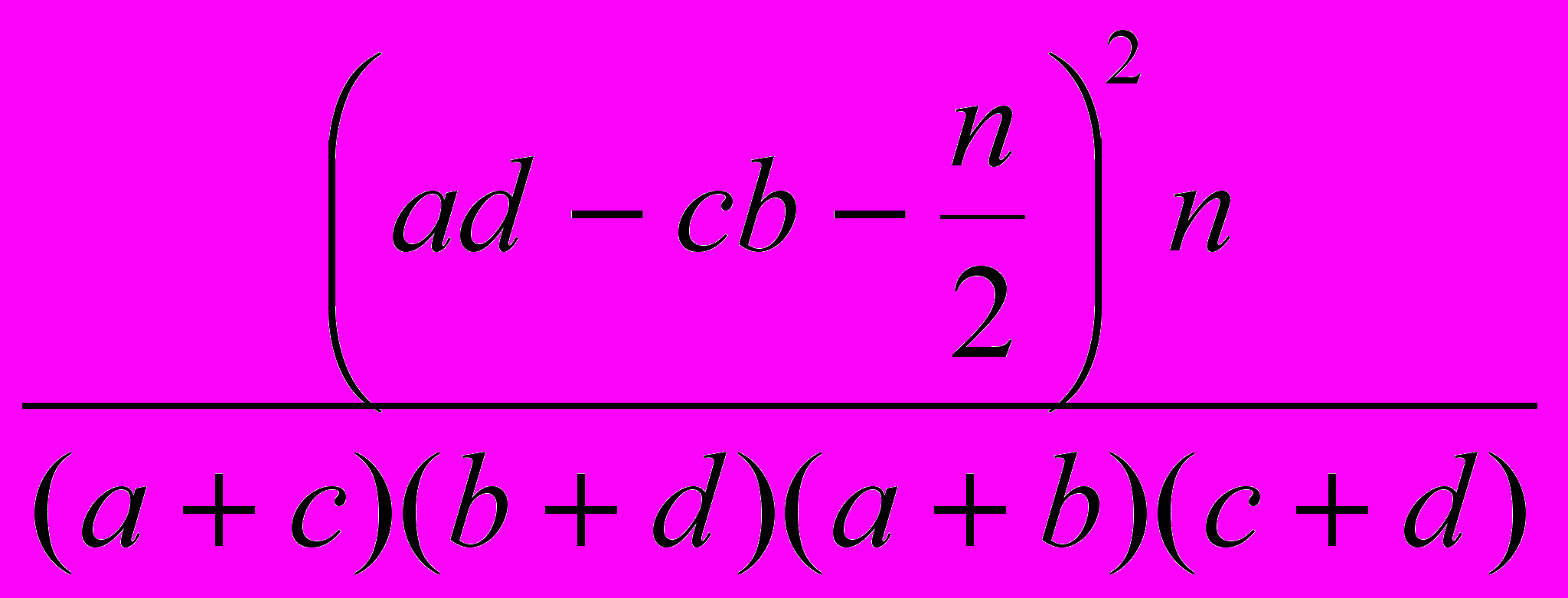 (2),где а — число пластинок с одним сигналом исследуемого ДНК-зонда у больного с СВ; b — число пластинок с двумя сигналами от ДНК-зонда у больного с СВ; c — число пластинок с одним сигналом от ДНК-зонда в контрольной группе; d — число пластинок с двумя сигналами от ДНК-зонда в контрольной группе; n = a + b + +c + d. При получении значения р = рα > 0,05 нулевая гипотеза не могла быть отвергнута.